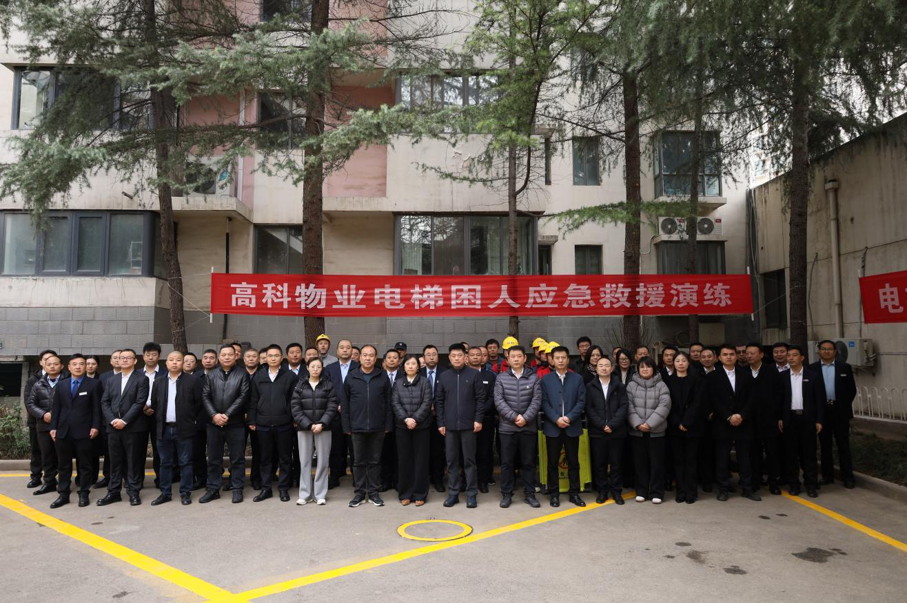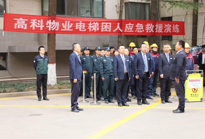 为筑牢特种设备安全防线,提升应急处置实战能力,切实守护业主生命财产安全,3月19日上午,高科物业在枫林绿洲小区组织电梯困人应急预案实战演练。公司领导班子、各部门负责人,各事业部、各公司安全分管领导及安全(工程)部负责人参加,特邀业主代表共同参与,高新区市场监督管理局特设科科长亲临现场指导点评,参与总人数达80余人。